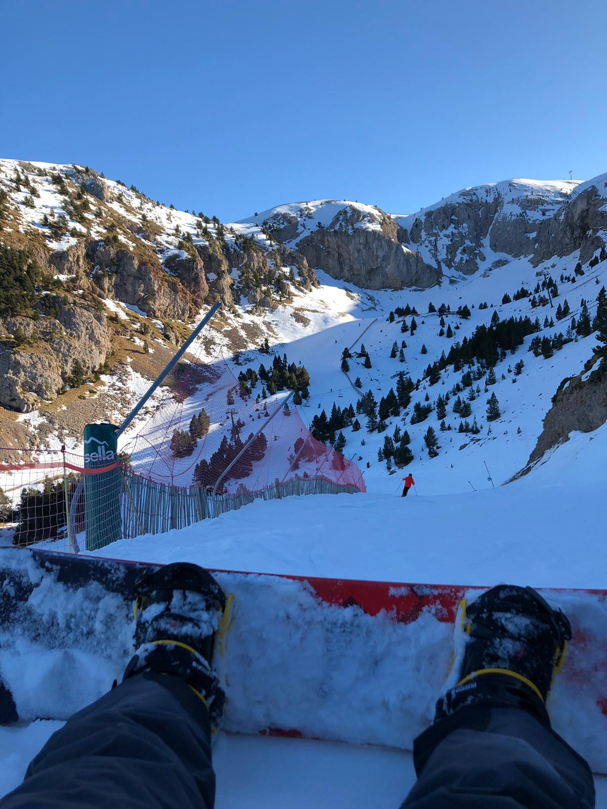 Al largo de mi vida he hecho esquí 3 o 4 veces al año. Este año he decidido empezar a hacer snowboard y por lo menos acabar bajando las pistas negras. Normalmente con la familia pasamos 3 días enteros esquiando, pero este año me puse enfermó y no pude ir. Como me quedé con las ganas de ir, le dije a un amigo, que también había empezado con el snowboard hacía poco, para ir. Me dijo que si y ese mismo fin de semana cogimos el bus Sagalés que nos llevaba a la Masella. Nos levantamos a las 5 ya que el bus salía a las 6, tras varias paradas y unas cuantas risas llegamos 4 horas después a la estación. Alquilamos el material que previamente habíamos reservado y nos lanzamos a la aventura.